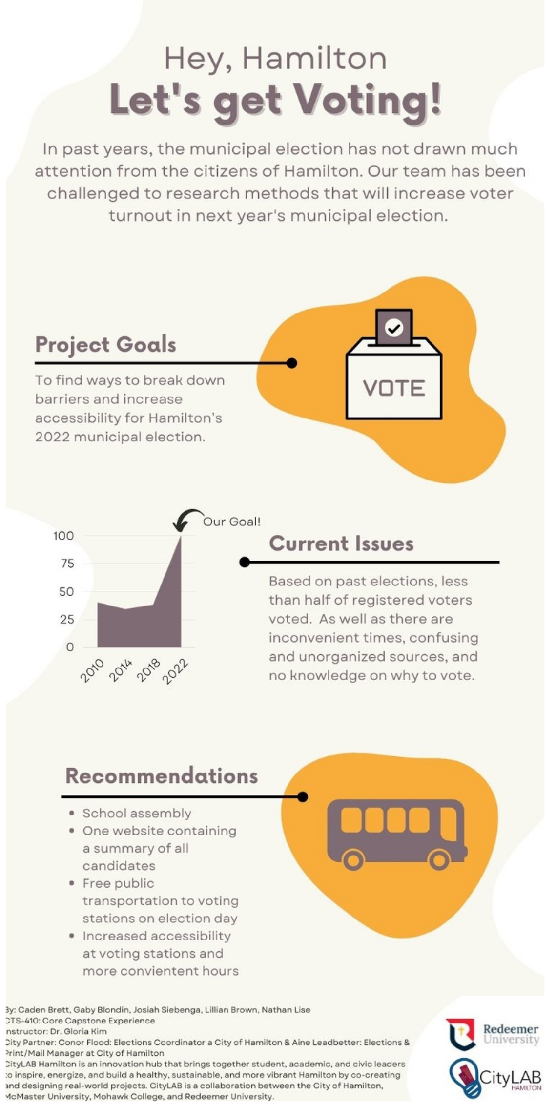 Where will the work go and what will it be used for: Students’ work will inform the communication and information materials that the City of Hamilton creates to inform residents of the 2022 municipal election.